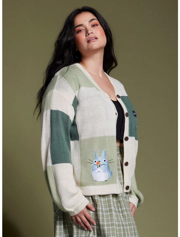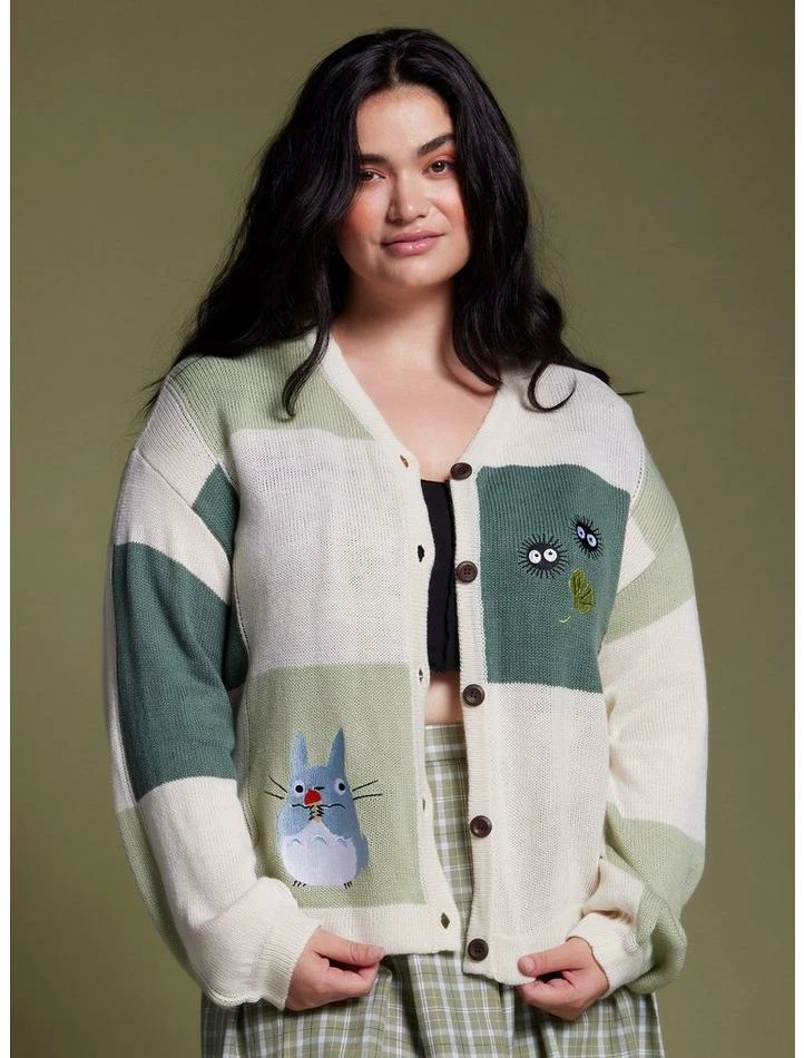 Heading into the forest to nap with Totoro? The woods can get a little chilly, so bring this cozy cardigan along! Add some nature to your Studio Ghibli wardrobe with thisΒ My Neighbor TotoroΒ skimmer cardi, featuring a patchwork-inspired design with Totoro and Soot Sprites embroidered on the front.