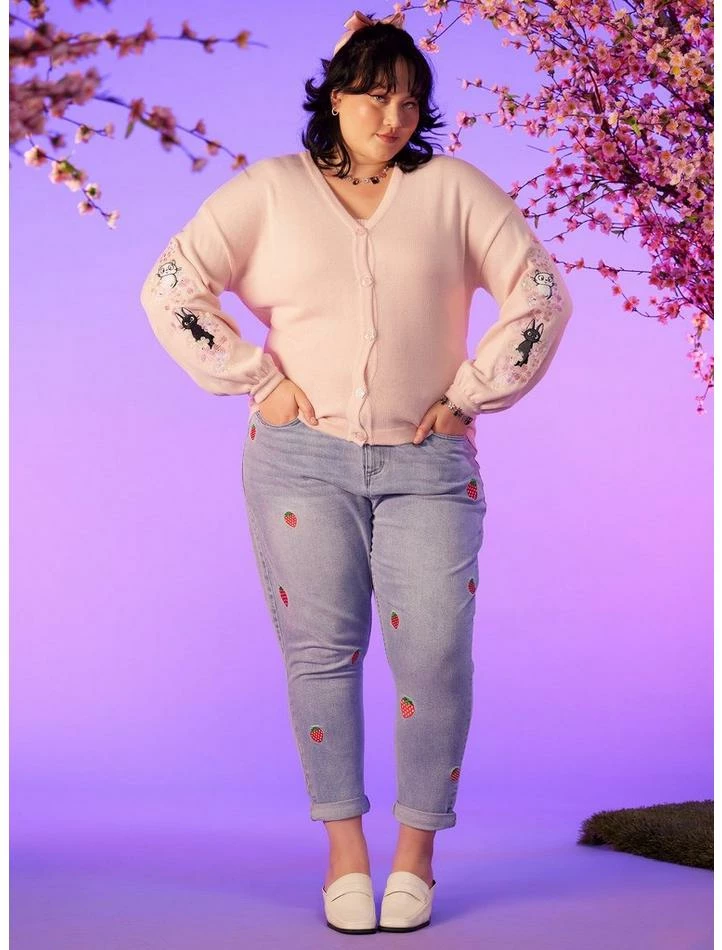 Who’s better company for your cherry blossom viewing than these two kitties? Let your outfit bloom with this knit cardigan fromΒ Kiki’s Delivery Service, featuring embroidery of Jiji, Lily and sakura down the sleeves. The center buttons are shaped like pink flowers to match the springtime!