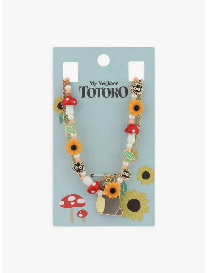 Take style inspiration from the forest and wear these necklaces from My Neighbor Totoro featuring a Totoro pendant and mushroom, sunflower and Soot Sprite charms.