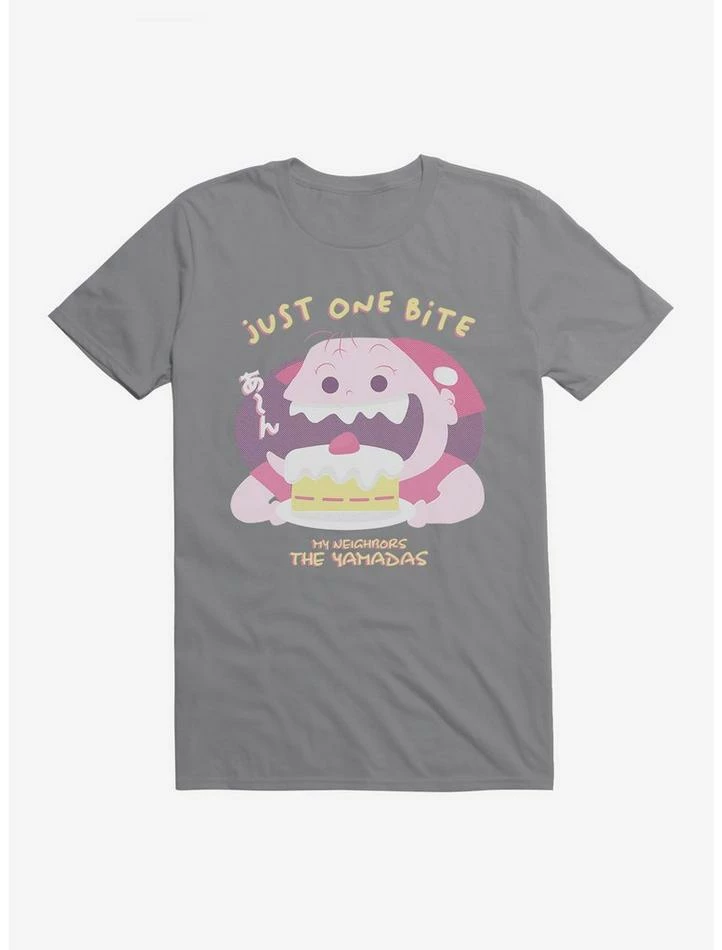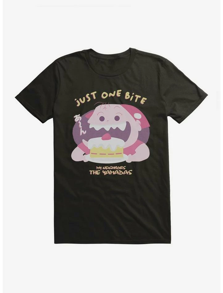 “Just one bite.” This tee — inspired by the Studio Ghibli film My Neighbors The Yamadas — features the character of Nonoko about to literally take the cake. *Chomp!*