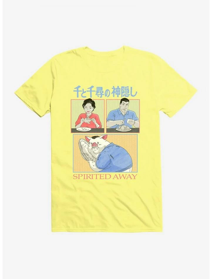 Delicious! This tee from the Studio Ghibli classic Spirited Away features imagery from the iconic banquet scene. Have some chicken — but don’t be greedy. Oink, oink!