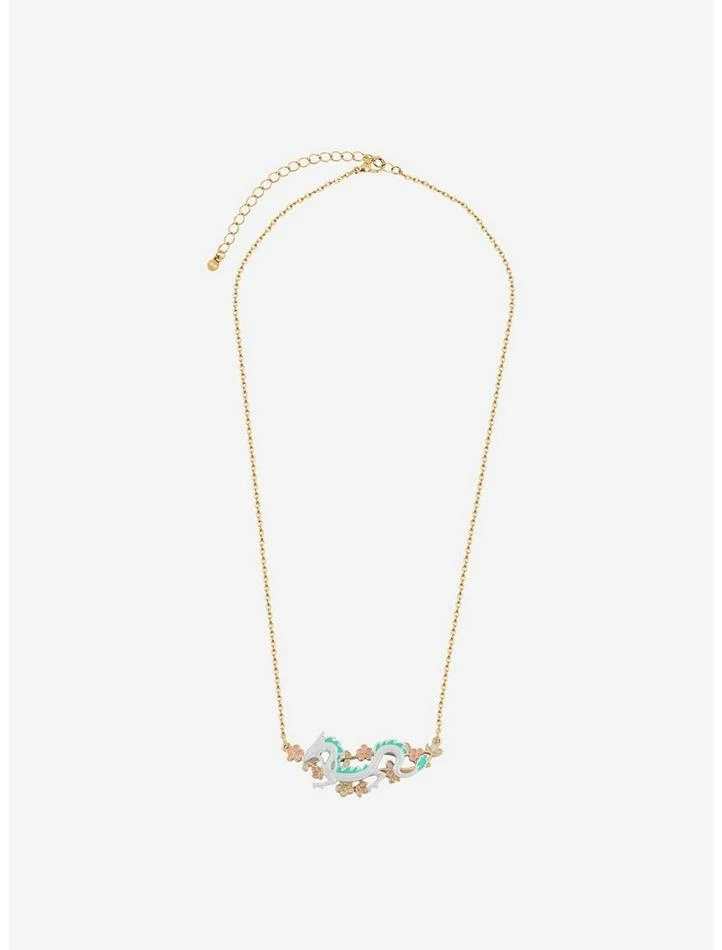 Studio Ghibli is bringing all the spring vibes with cute accessories! This gold-tone necklace from Spirited Away features a horizontal pendant of Haku in his dragon form, over branches with beautiful sakura flowers.