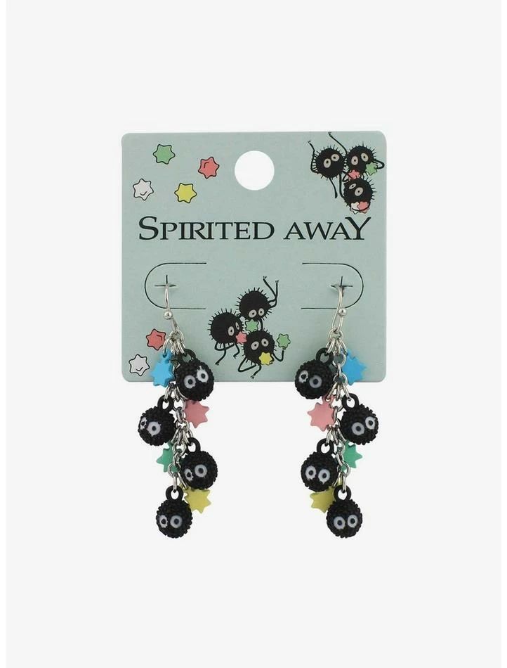 Visiting Kamaji in the boiler room? Make sure to bring some star candy for your favorite hardworking Soot Sprites! Add some Spirited Awayย style to your outfit with these drop earrings, filled with charms of Soot Sprites and colorful star-shaped candies.